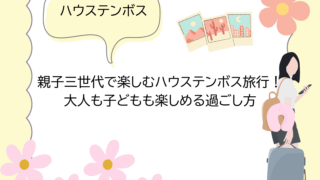 ハウステンボス 親子三世代で楽しむハウステンボス旅行!大人も子どもも楽しめる過ごし方 長崎・ハウステンボスは三世代旅行にぴったり!子どもはアトラクション、大人はグルメやショッピング、シニアは散策や文化体験を楽しめます。家族みんなで笑顔になれる過ごし方やおすすめスポットを詳しく紹介してますので、ぜひご覧ください。 2025.09.30 ハウステンボス旅行
