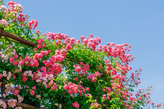 中でも、初夏の始まりにはバラが​織りなす​多彩な​絶景を楽しむことができます。園内いっぱいに広がる色鮮やかなバラと、ヨーロッパの街並みが重なり、まるで海外に来たかのような非日常空間を楽しめます。